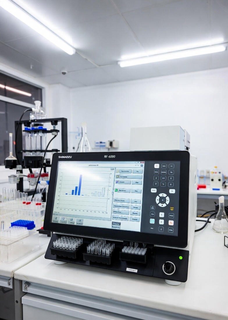 اسپکتروفلورومتر RF-6000 شرکت Shimadzu در صنایع دارویی برای شناسایی و کنترل کیفیت ترکیبات فعال دارویی (API)، اندازهگیری غلظت داروها مانند دولوکستین هیدروکلراید (داروی ضدافسردگی)، و آنالیز کمی اجزای موجود در محصولات نهایی استفاده میشود.