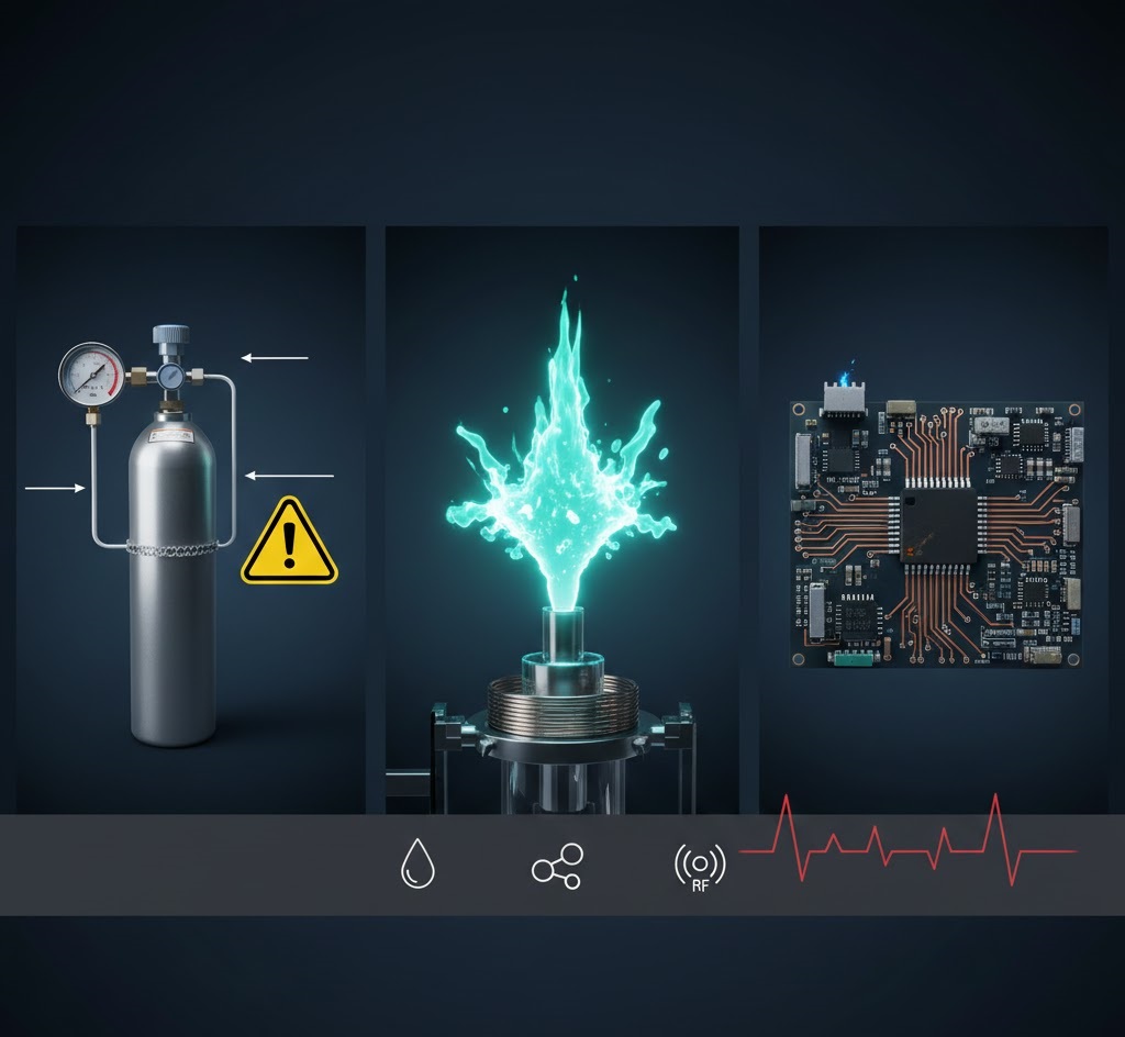 - عدم تطابق امپدانس (Impedance Mismatch): وقتی شبکه تطبیق نتواند انرژی RF را پایدار منتقل کند. علل رایج: تغییرات Gas/Flow، آلودگی/خوردگی کویل، مشکل در Matching Network.